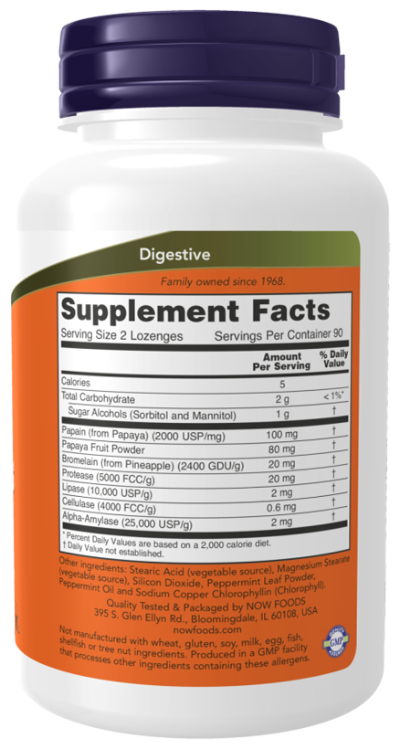 NOW Papaya Enzymes 180 lozenges